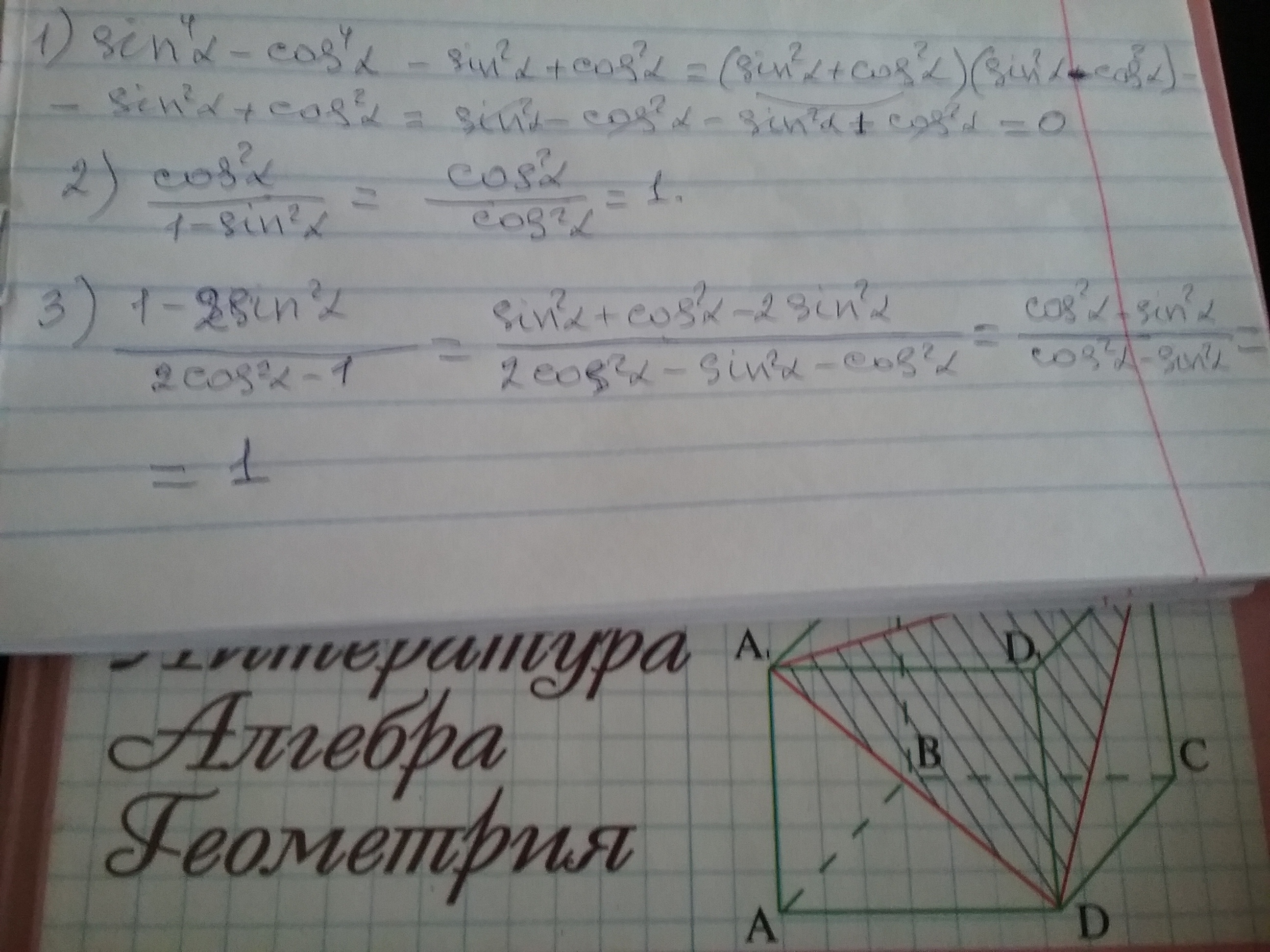 1)(sin²a-cos²a)(sin²a+cos²a)-sin²a+cos²a=sin²a-cos²a-sin²a+cos²a=0