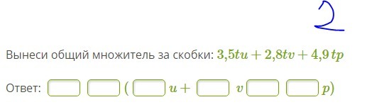2)Вынеси общий множитель за скобки: 3,5tu+2,8tv+4,9tp