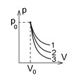 Три идеальных газа – одноатомный, двухатомный и многоатомный – имеют одинаковое начальное давление и объем и совершают процесс адиабатического расширения. Кривые этих процессов показаны на диаграмме. Расширению многоатомного газа соответствует кривая: