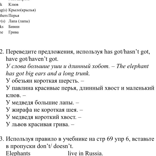 Peacock has beautiful feathers, a long tail and a small beak. The bear has big paws. A giraffe does not have a short neck. The bear has a short tail. Lions have a beautiful mane.