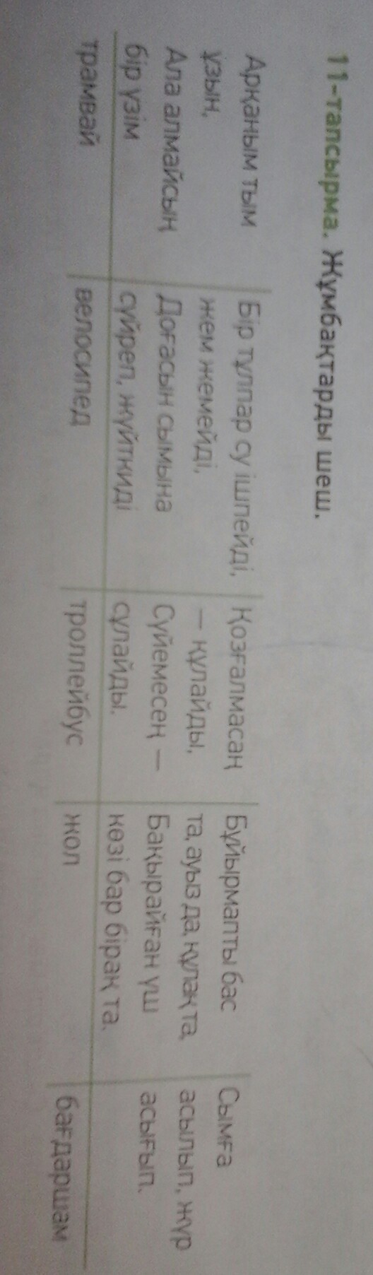 1- графа ответ: жол, 2- трамвай, 3- велосипед, 4- багдаршам, 5- троллейбус