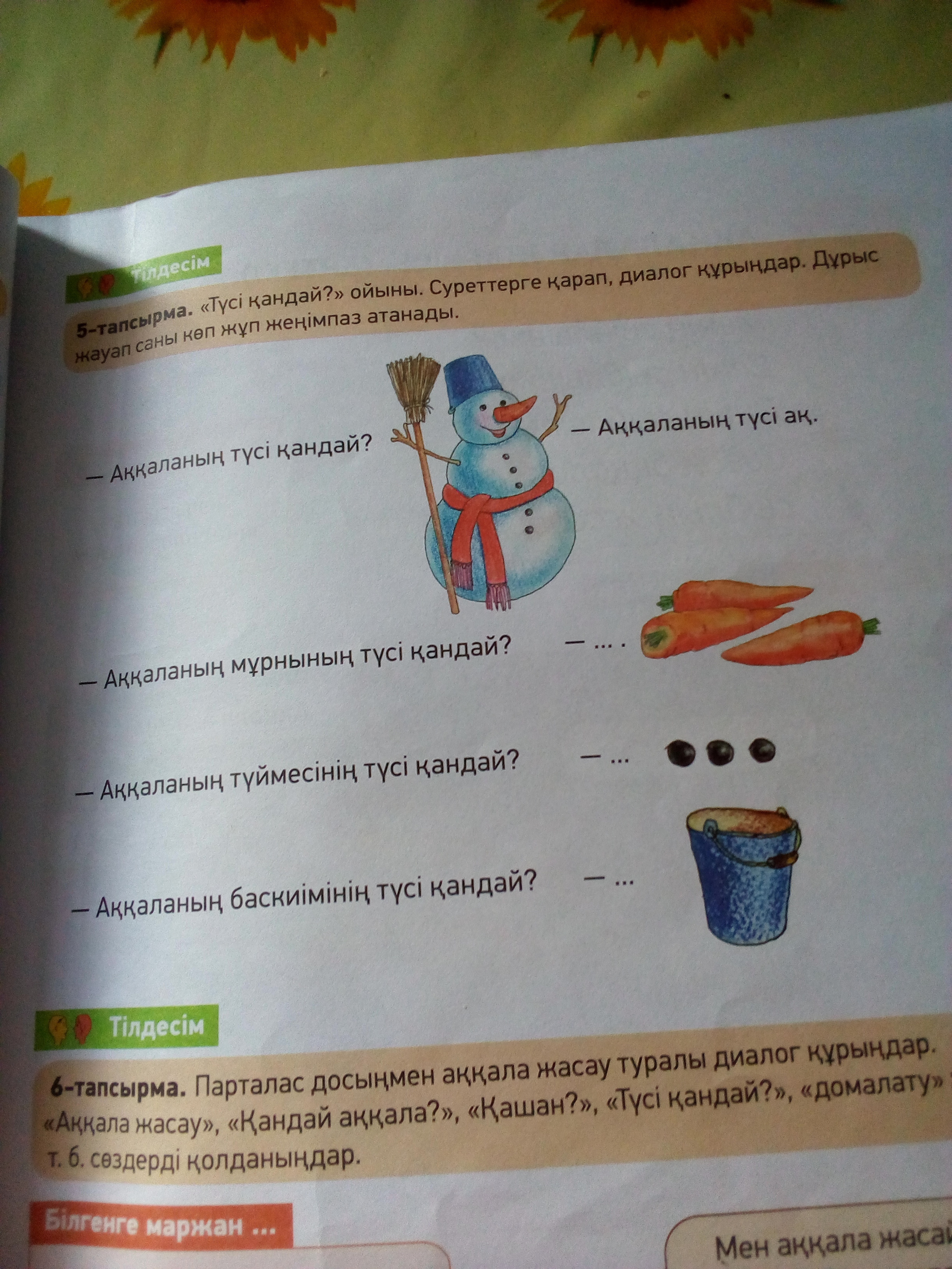Аққаланың түсі ақ,Аққаланың мұрнының түсі сәбіз түстес,Аққаланың түймесінің тусі қара,Аққаланың баскиімінің түсі көк
