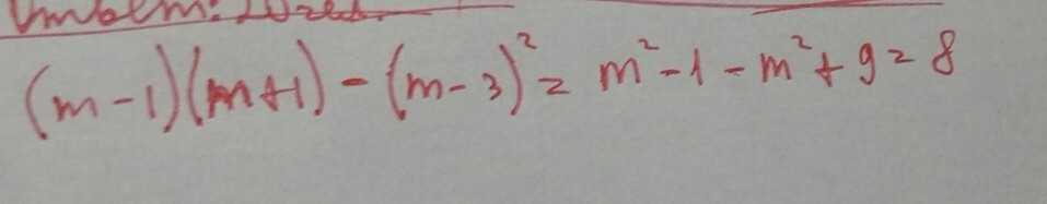 = m² - 1 - m² + 6m - 9 = 6m - 10