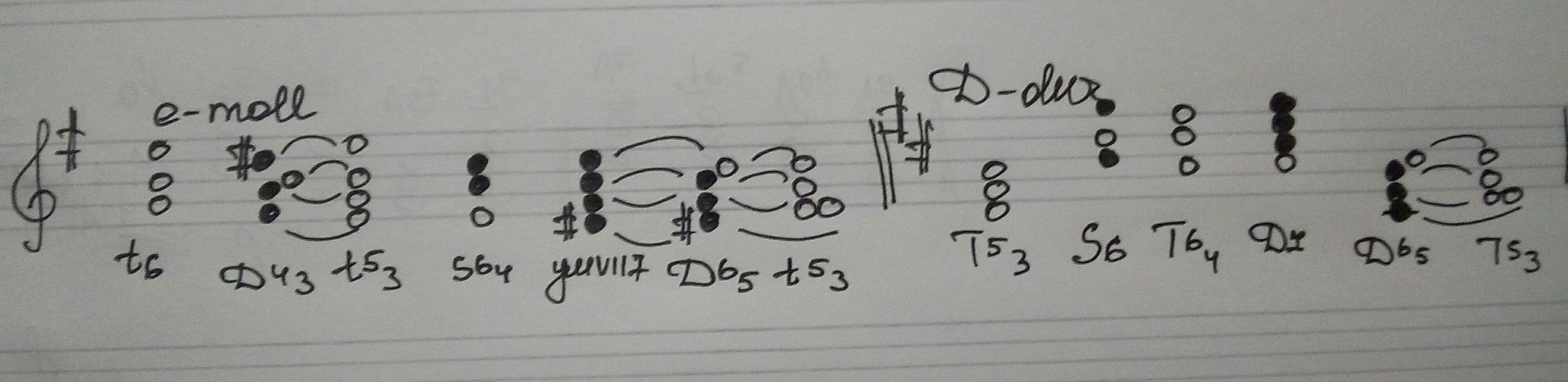 Построить цепочку в ми миноре гармоническом: Т6, Д34, Т35 развёрнутое, S46, ум. в.в. 7, Д56, Т35. Построить цепочку в ре мажоре: Т35, S6, Т46, Д7, Д56, Т35