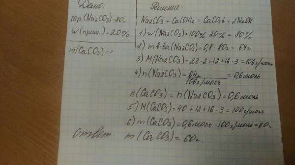 воды(гидроксида кальция) с 80г карбоната натрия, содержащего 20% примесей?