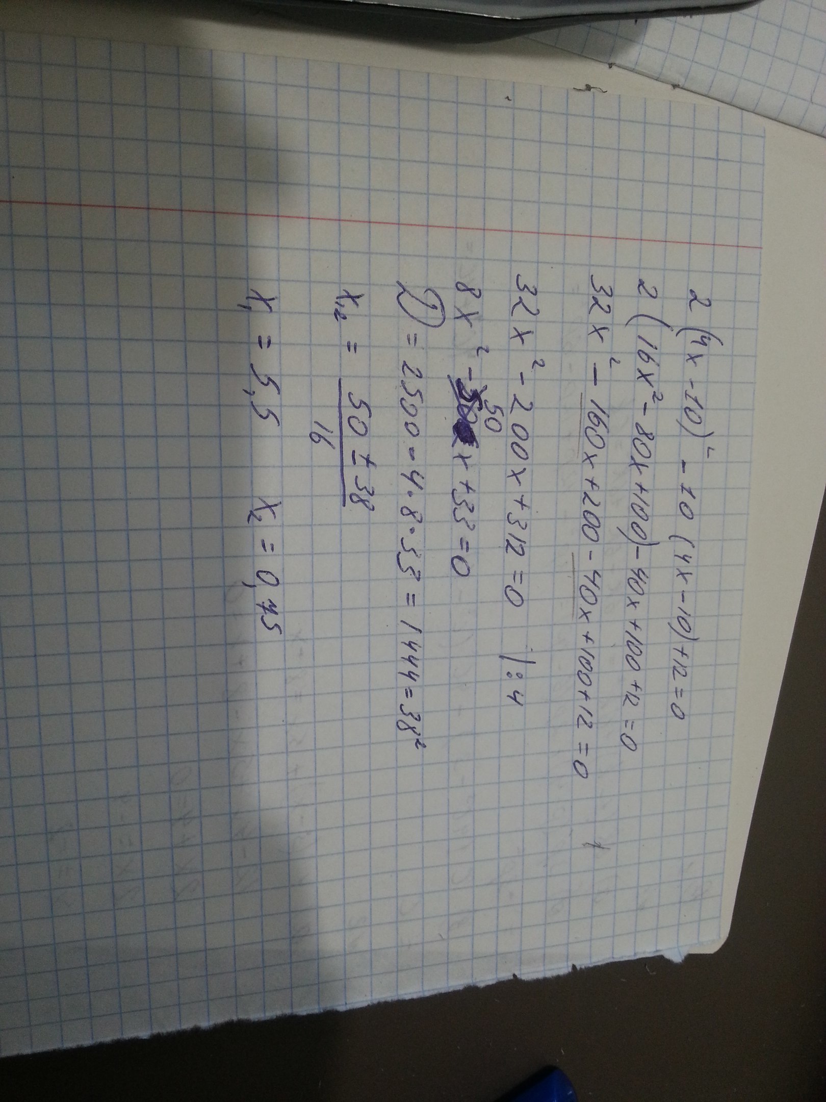 2(4x-10)^2-10(4x-10)+12=0-решите квадратное уравнение