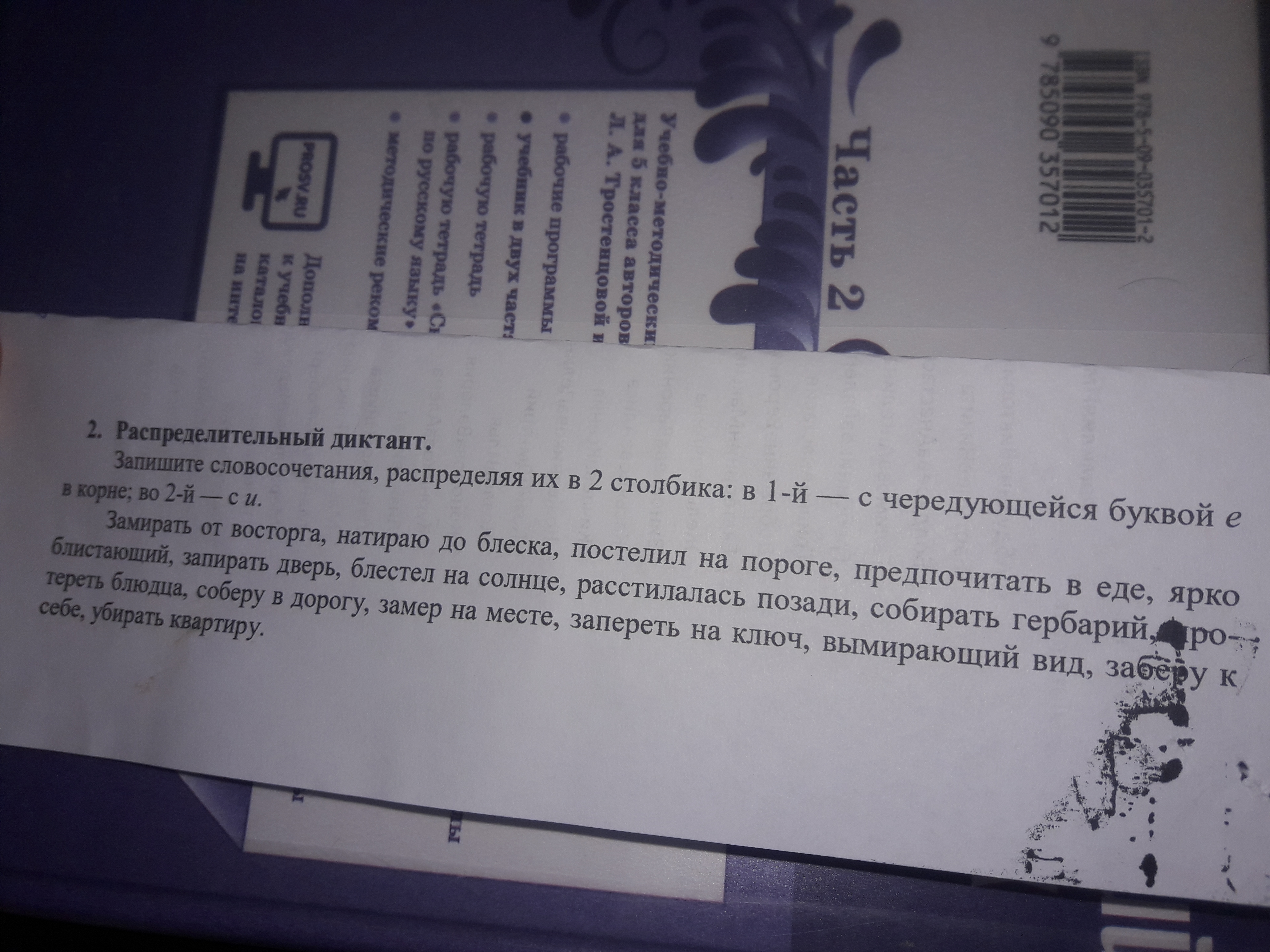 2 столбик: замирать от восторга; натираю до блеска; ярко блистающий; запирать дверь; расстилалась позади; собирать гербарий; вымирающий вид; убирать квартиру.
