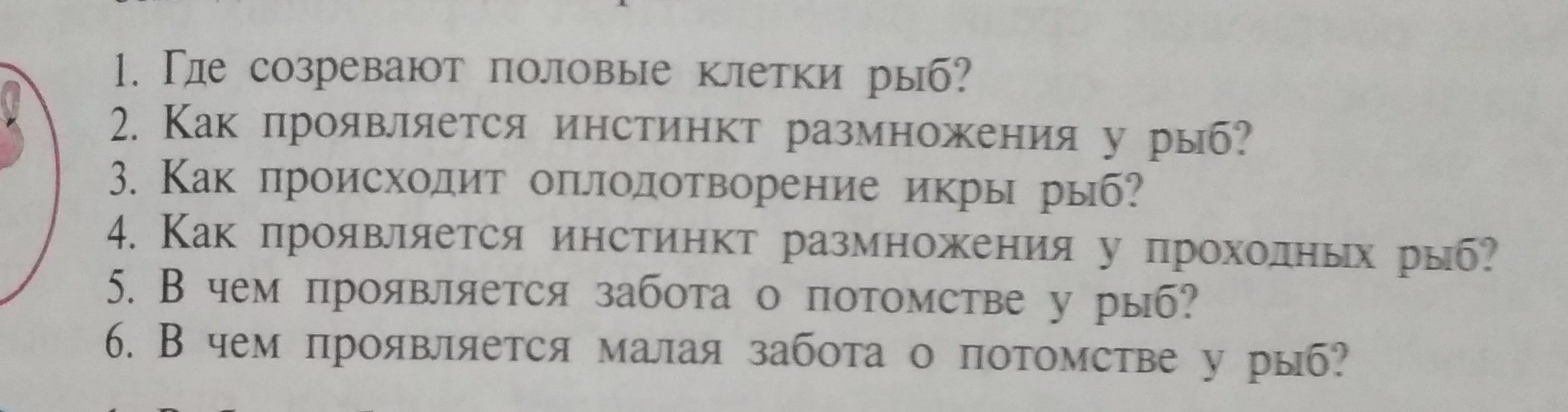 Женские-в яичниках. Мужские - в семенниках. Проявляемая забота о потомстве у рыб несознательна действует только до тех пор, пока личинки беспомощны. Когда они начинают хорошо плавать, родители их покидают. При созревании половых клеток у рыб проявляется инстинкт размножения. После они перемещаются в благоприятные для развития их будущего потомства. Там они выбрасывают икринки в воду. Такое оплодотворение икры называется наружным.