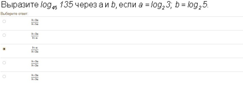 нам даны 5 ответов, подставим в каждый из ответов a и b, если полученное выражение совпадет с тем ответом, который нам нужен, то именно этот ответ правильный.