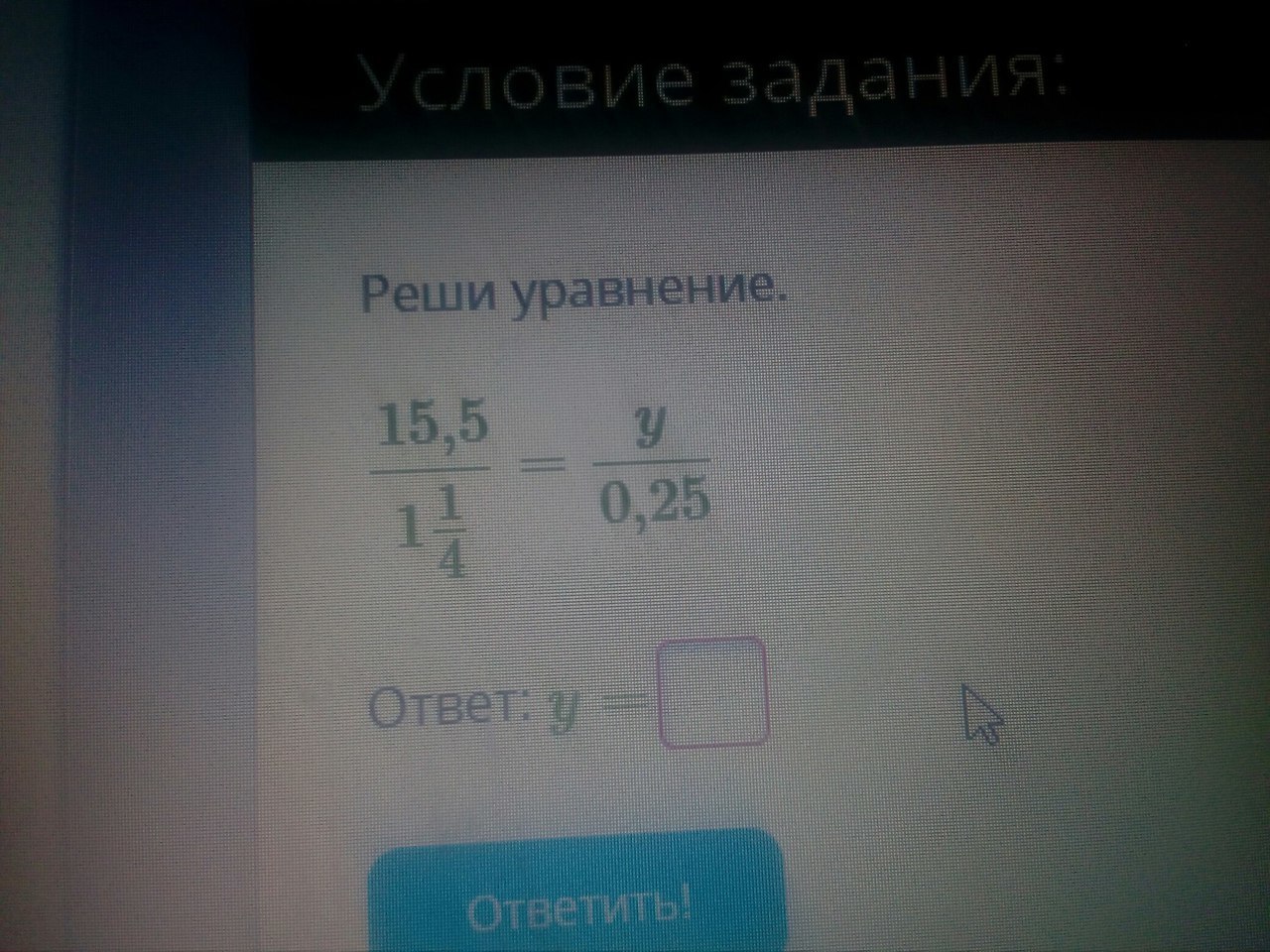 15,5/1,25:у/0,25=15,5/125:25/у=15,5/5:1/у=15,5:5у=3,1у