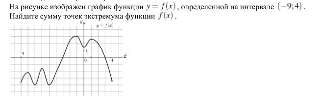 Заданная функция имеет максимумы в точках - 8 , - 6 , - 1 ,1 и минимумы в точках - 7, - 5 ,0 .Сумма точек экстремума равна