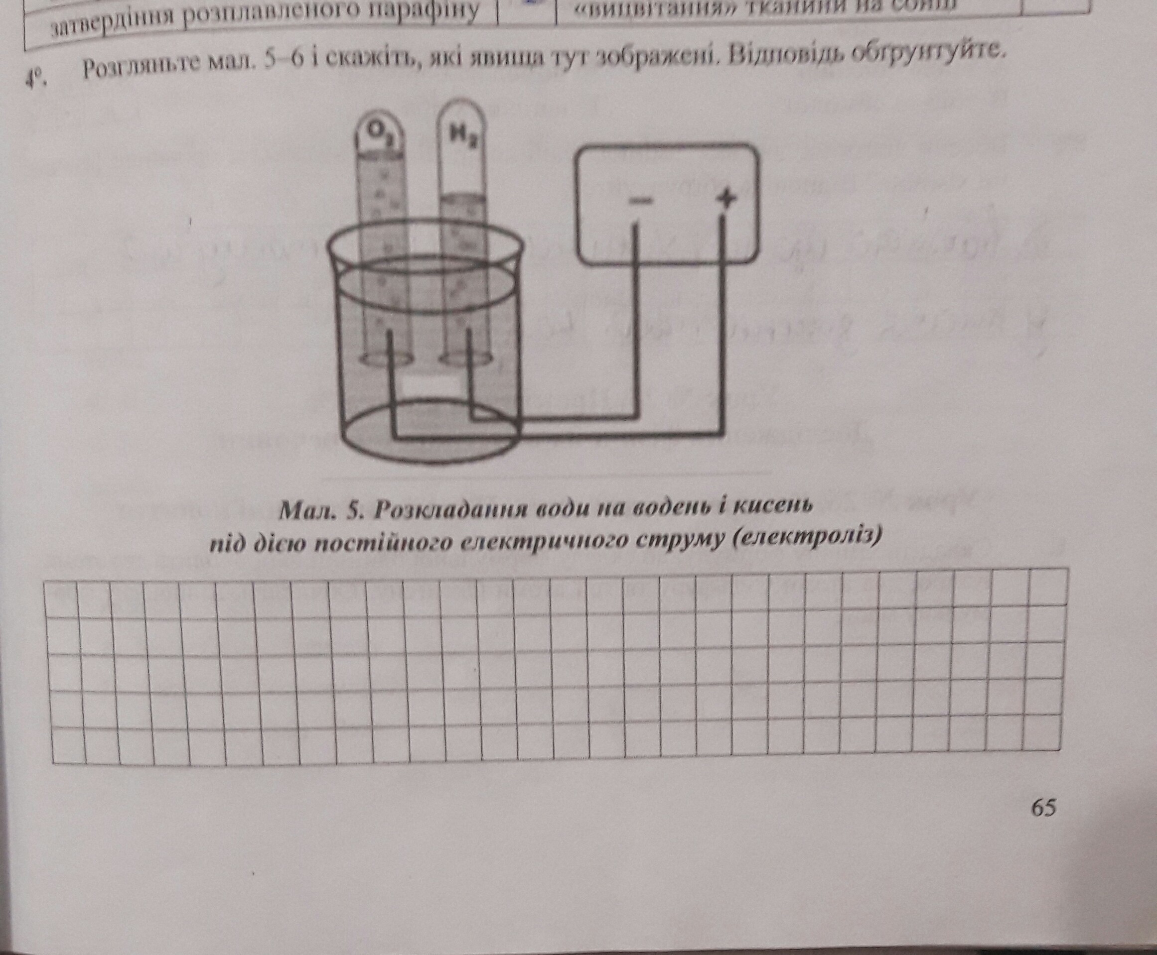 Разложение воды на кислород и водород под действием электрического тока.