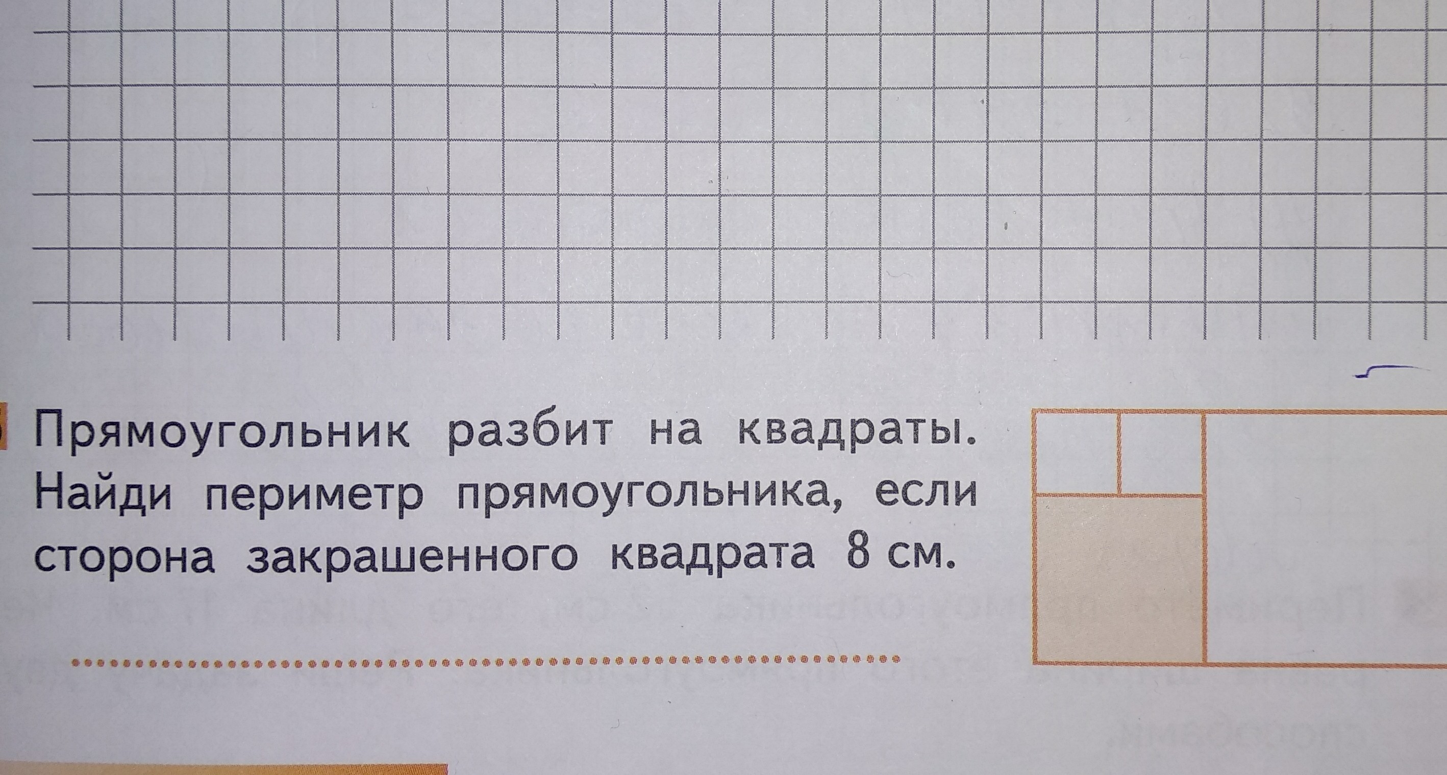 прямоугольник разбит на квадраты Найди периметр прямоугольника если сторона закрашенного квадрата 8 см