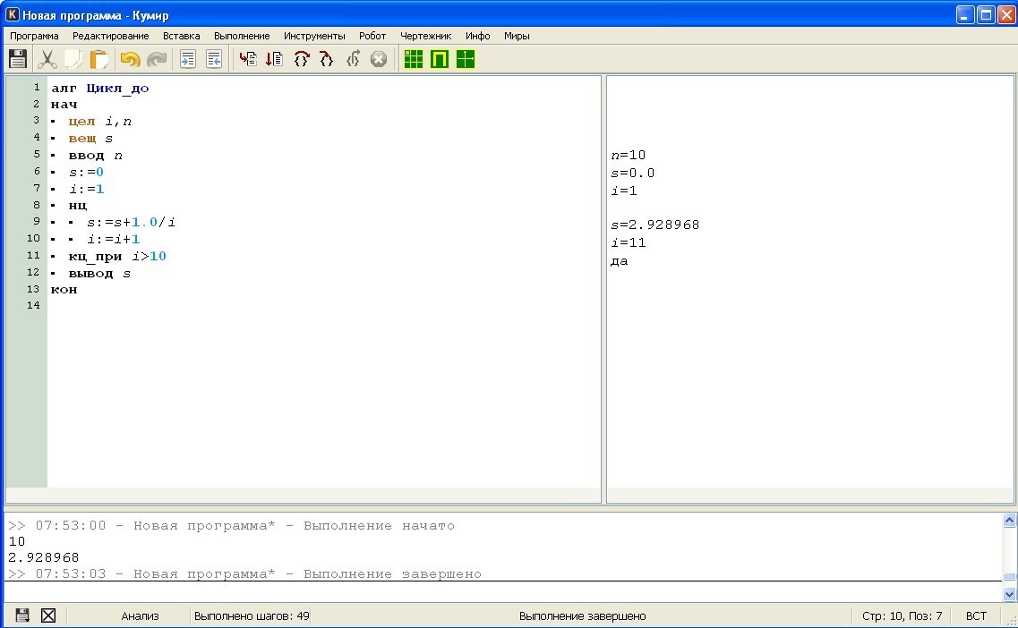 Для данного натурального числа N требуется вычислить сумму 1+1/2+1/3+...+1/N. Постройте блок схемы и напишите на АЯ два варианта алгоритма: с циклом-до и циклом-пока