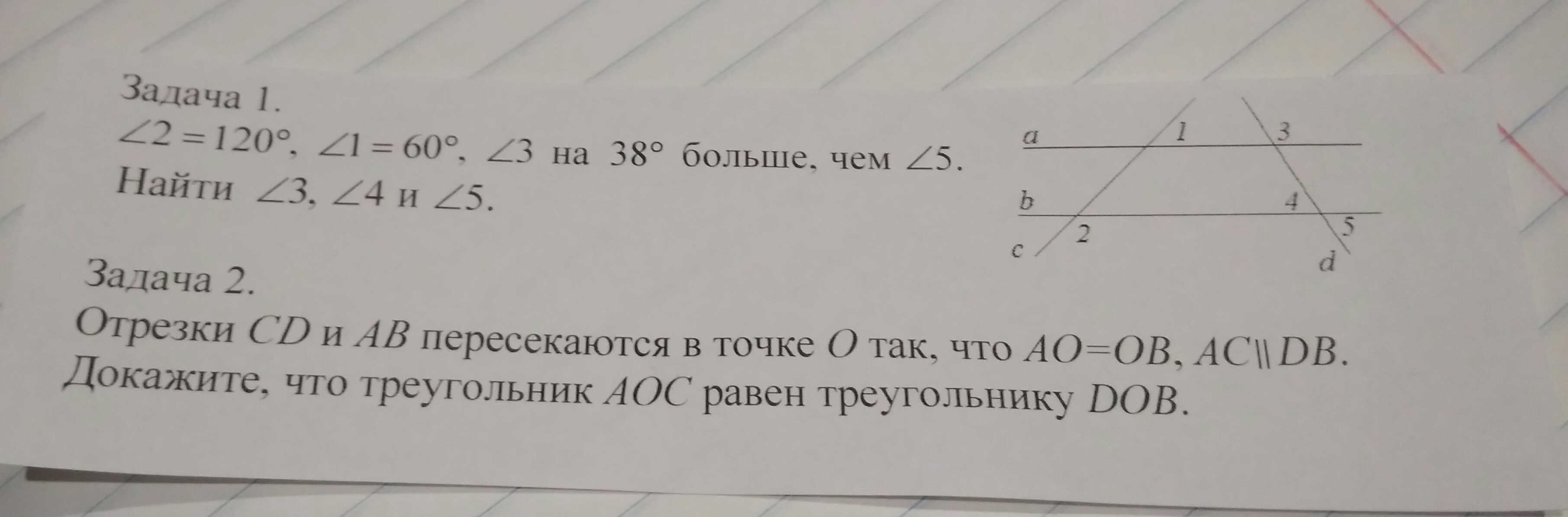 1. угол 2=120 угол1=60 угол 3 на 38 больше чем угол5. Найти угол 3кгол4 и угол 5