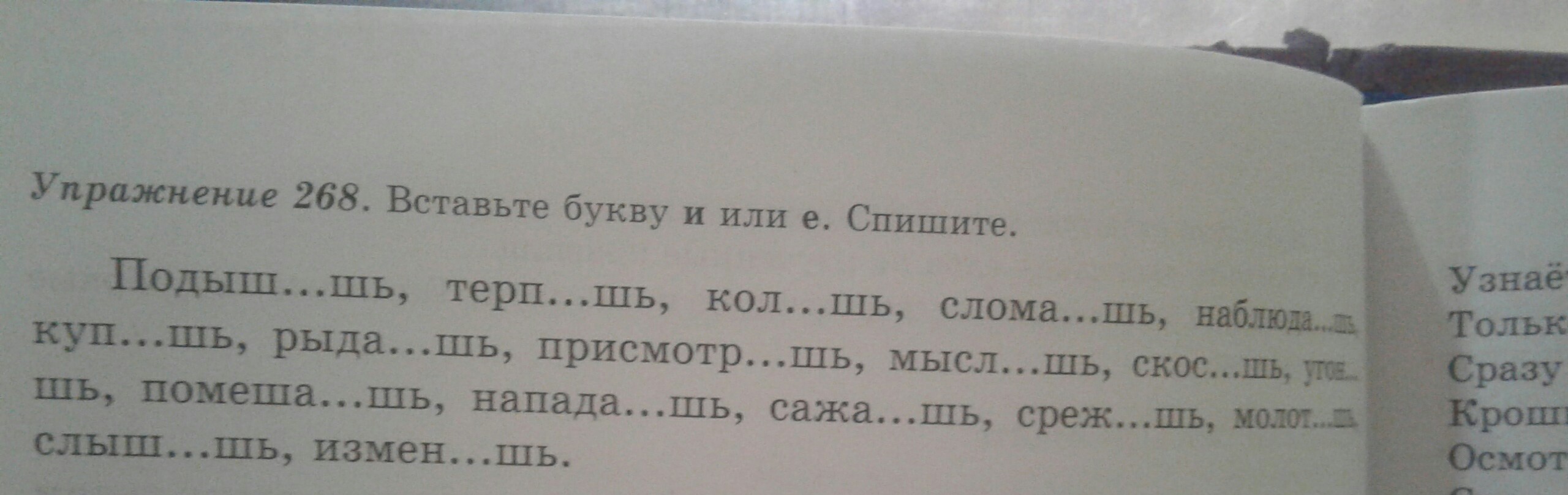 подышишь, терпишь, колишь, сломаешь, наблюдаешь, купишь, рыдаешь, присмотрешь, мыслишь, скосишь, угонишь, помешаешь, нападаешь, сажаешь, срежешь, молотишь, слышишь, изменишь.
