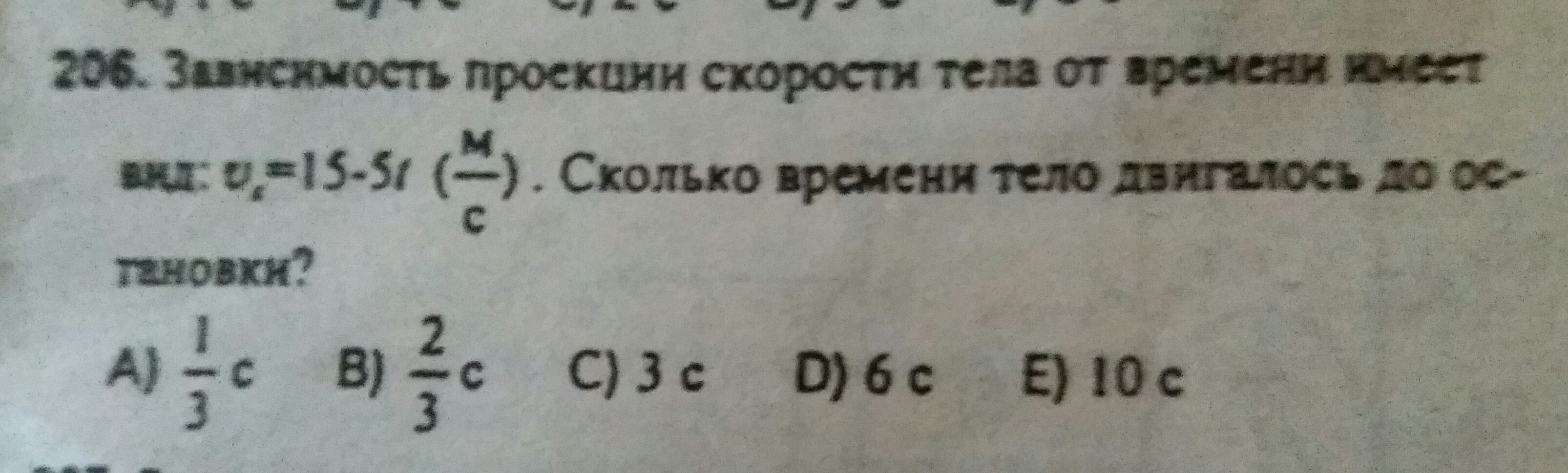 нужно получить V=0, зачит просто подобрат ь число, которое при умножении на 5 даст 15, ответ С
