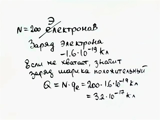 На шарике не хватает 200 електронов. Какой заряд имеет шарик?