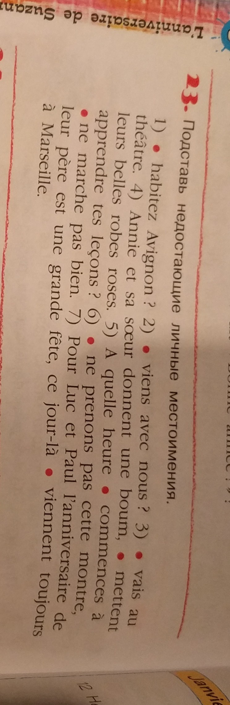 1. Vous; 2. Tu; 3. Tu; 4. Elle; 5. tu; 6. Nous; elle; 7. Ils