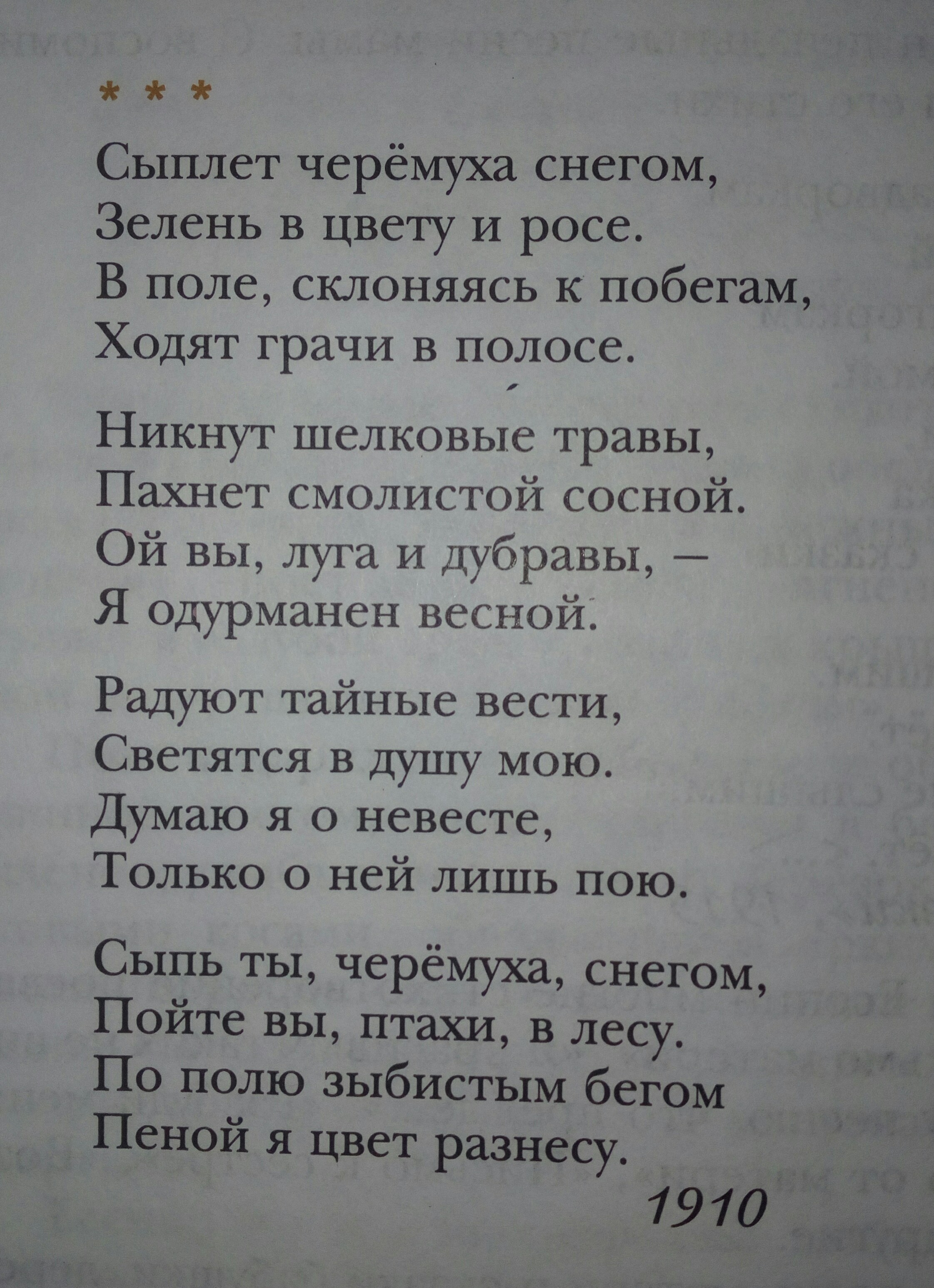 Кратки анализ(тема, идея, роль образных героев) стихотворения Есенина "Сыплет черёмуха снегом".