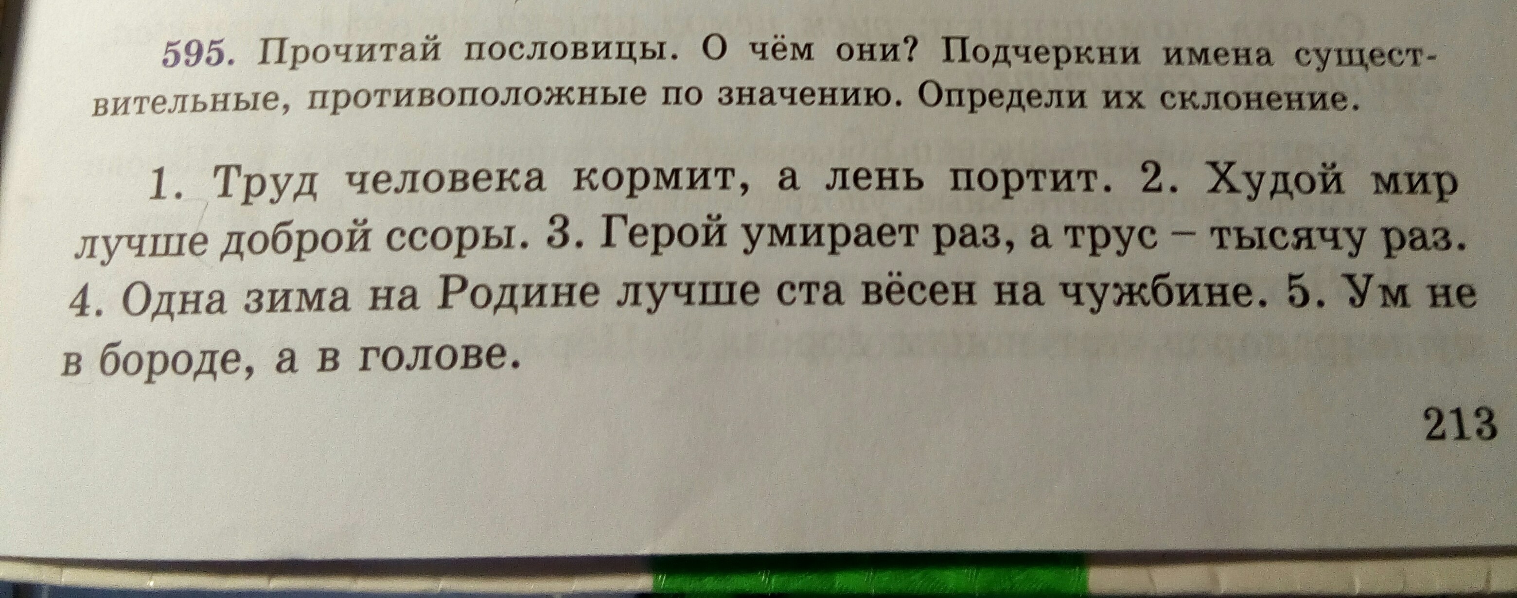 1. Труд 2скл -лень 3скл ,2 мир 2скл -сора 1скл ,3 герой 1скл -трус 2скл ,4 зима 1скл-весна 1скл , 5 борода 1скл -голова 1скл .
