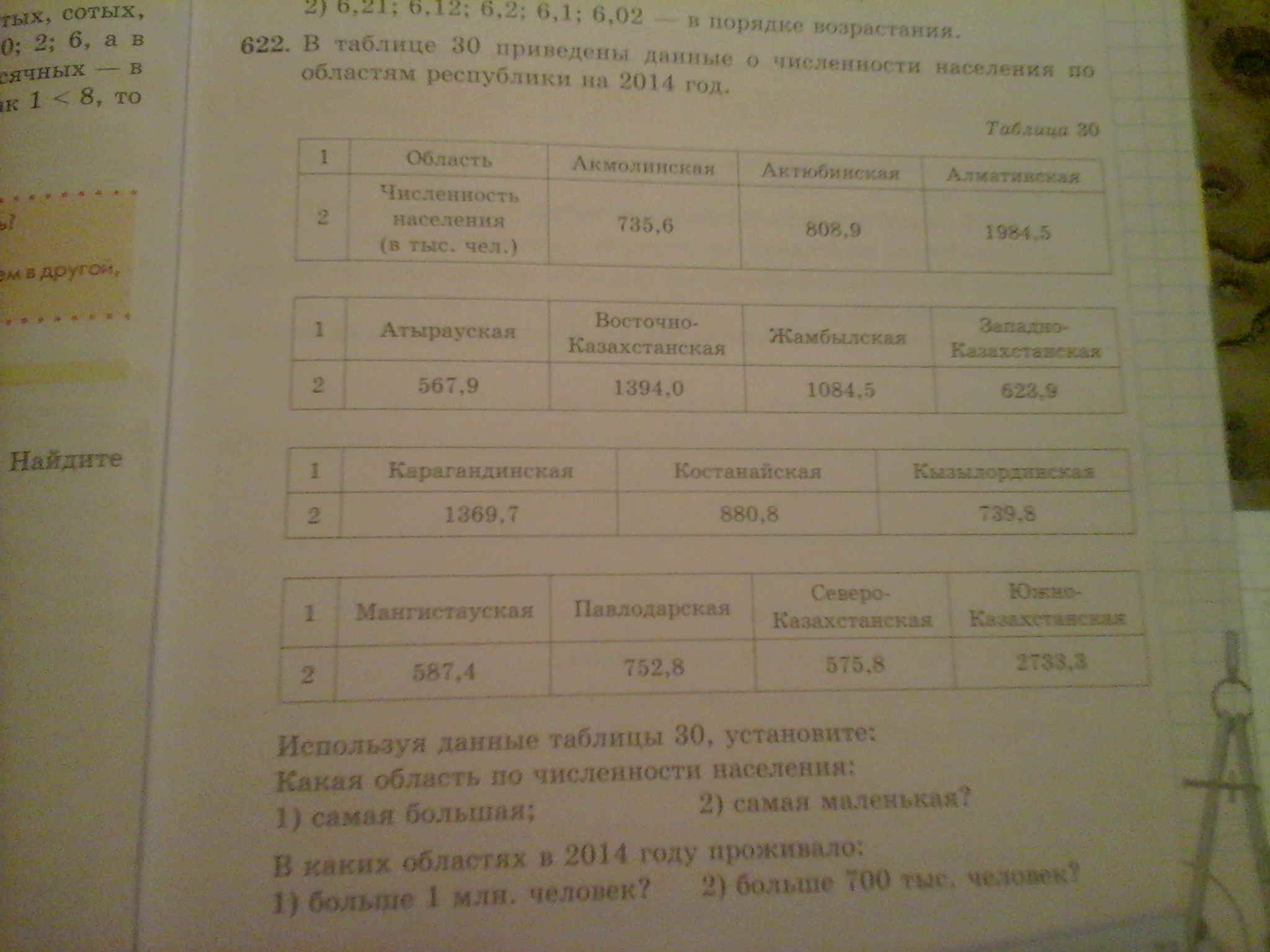 2) Алматинская, Восточно - Казахстанская, Жамбылская, Карагандинская, Южно - Казахстанская, Акмолинская, Актюбинская, Костанайская, Кызылординская, Павлодарская
