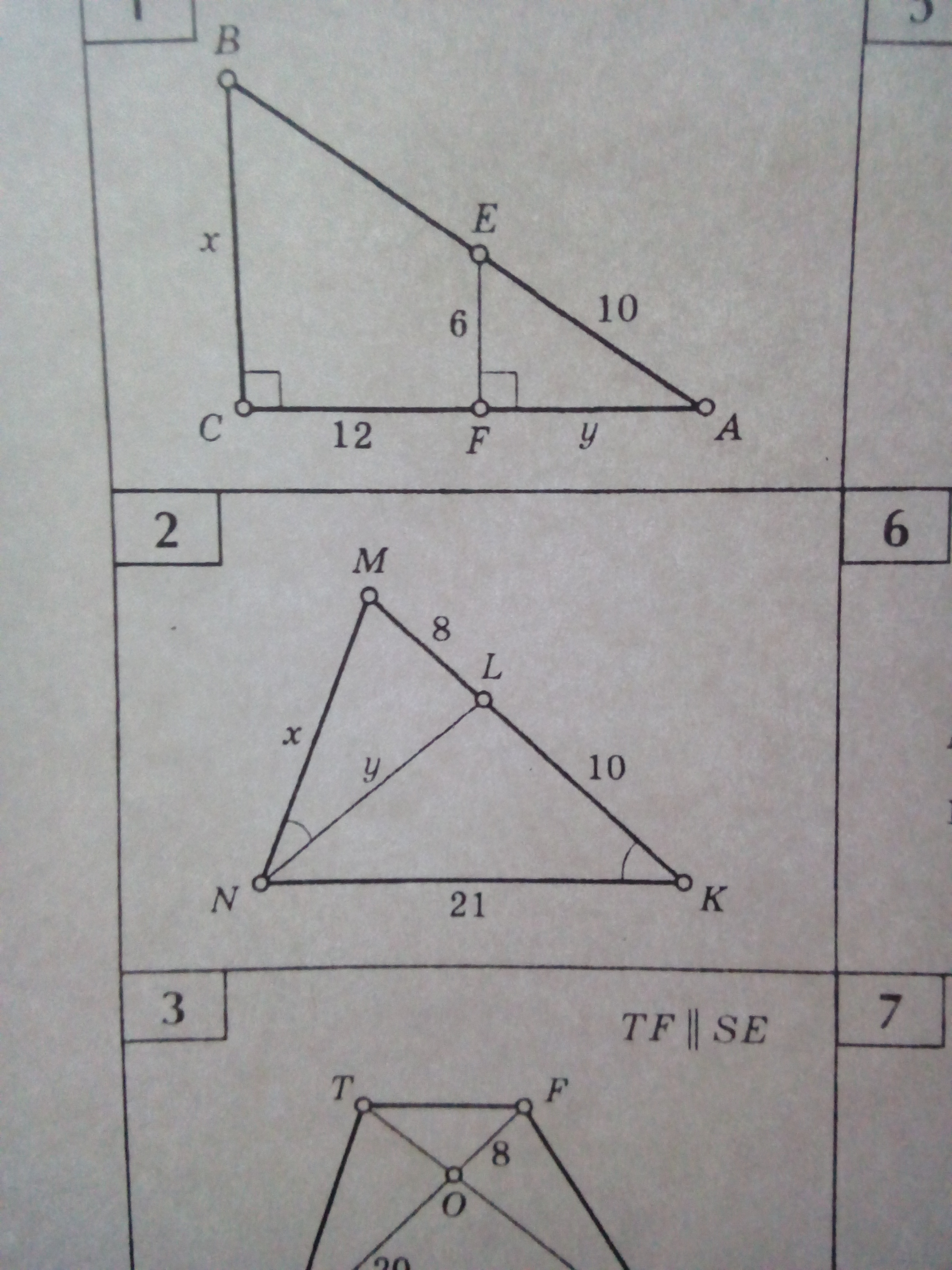 МL=8, LK=10, NK=21, NL=y, MN=x.