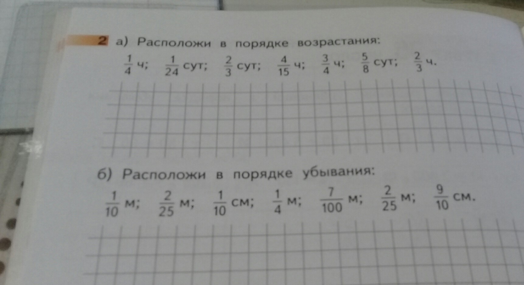 Б)¼м,¹/10м,²/25м,²/25м,7/100м,9/10см,¹/10см.