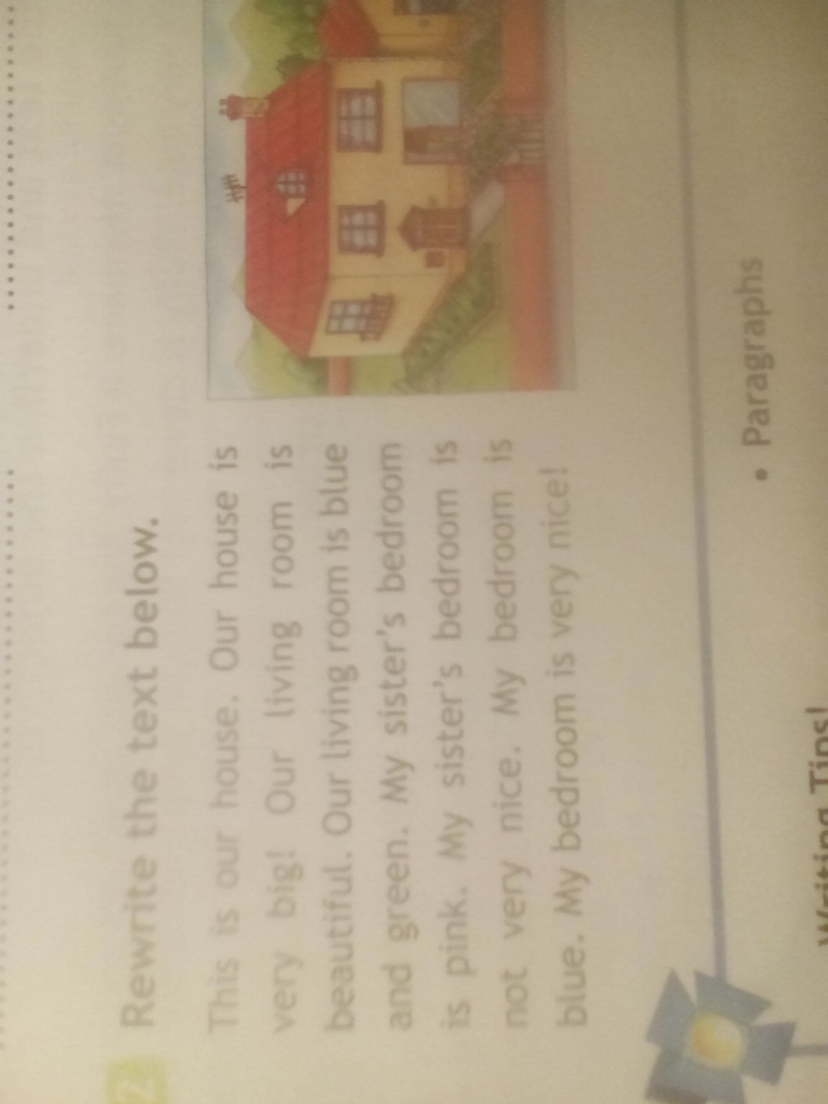 Зис ис уор хаус ис вери биг! Уор ливинг рум ис бьютифол. Уор ливинг рум ис блю энд грин. Май систирс бедрум ис пинк. Май систирс бедрум ис нот вери найс. Май бедрум ис блю. Май бедрум и с вери найс!
