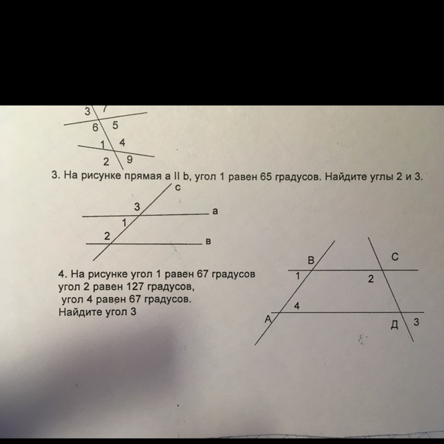 На рисунке прямая а//b, угол 1=67 градусов. Найдите углы 2 и 3!!!Даю 20 баллов