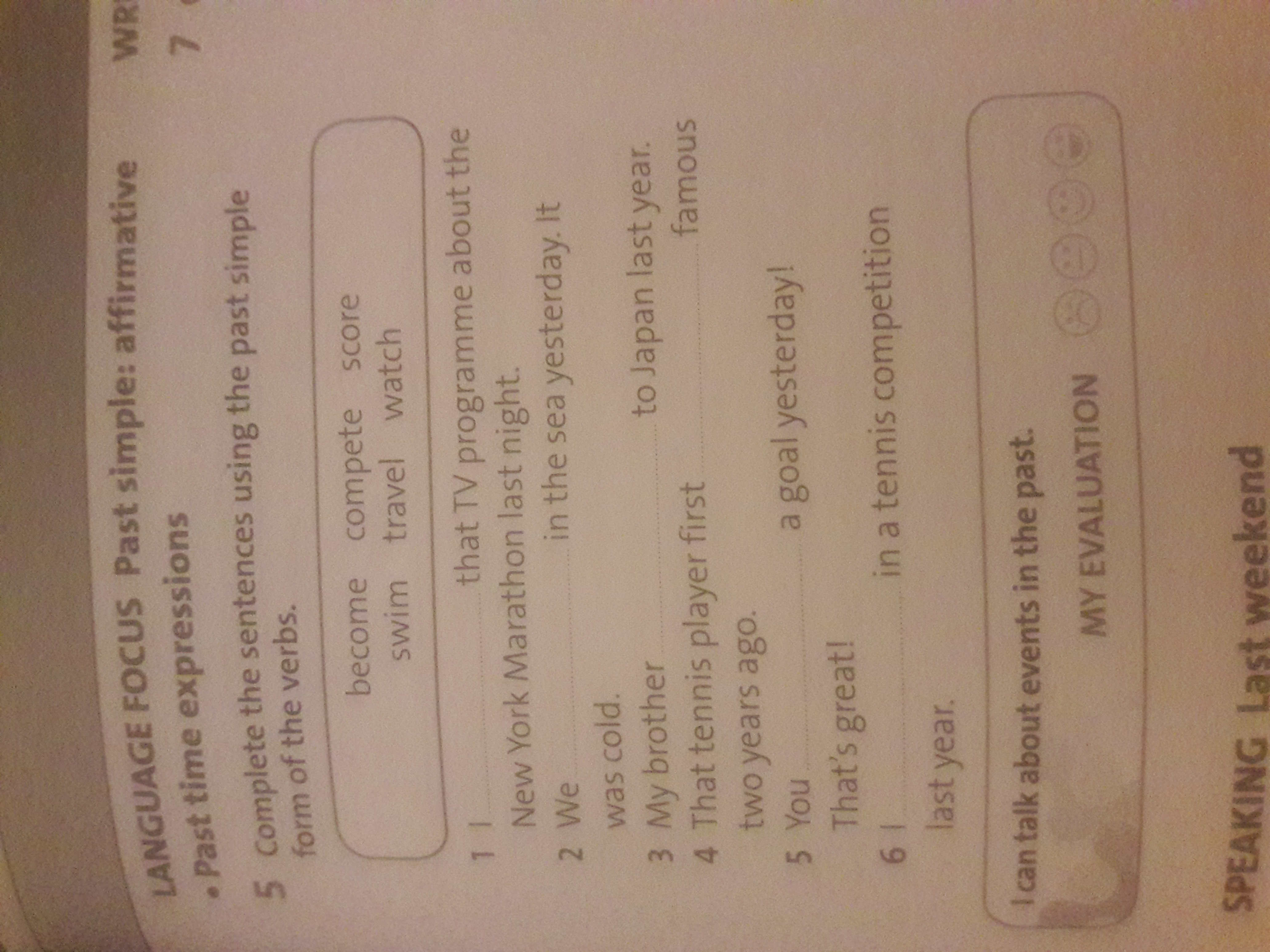 1)watched 2)swam 3)traveled 4)became 5)scored 6)competed