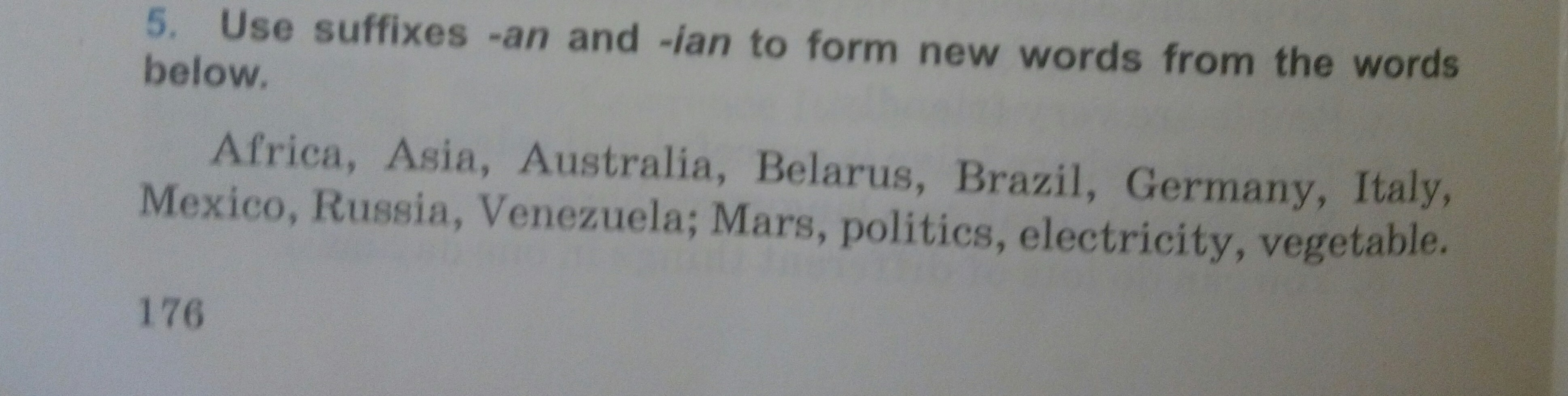 African, Asian, Australian, Belarusian, Brazilian, Germanian, Italian, Mexican, Russian, Venezuelan, Marsian,