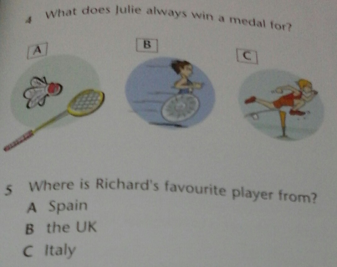 1, За что Джульетта всегда выигрывает медаль?2, Где Ричард больше всего любит играть?Наверное должна быть аудиозапись