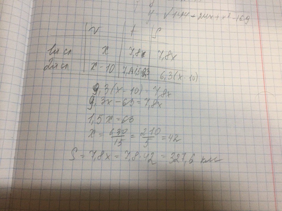 От станции А до станции В поезд идет 7,8 часов.Если скорость поезда будет на 10 км/ч меньше, то для преодоления этого пути он затратит времени на 1 ч. 30 мин больше.Найдите растояние между станциями А и В.