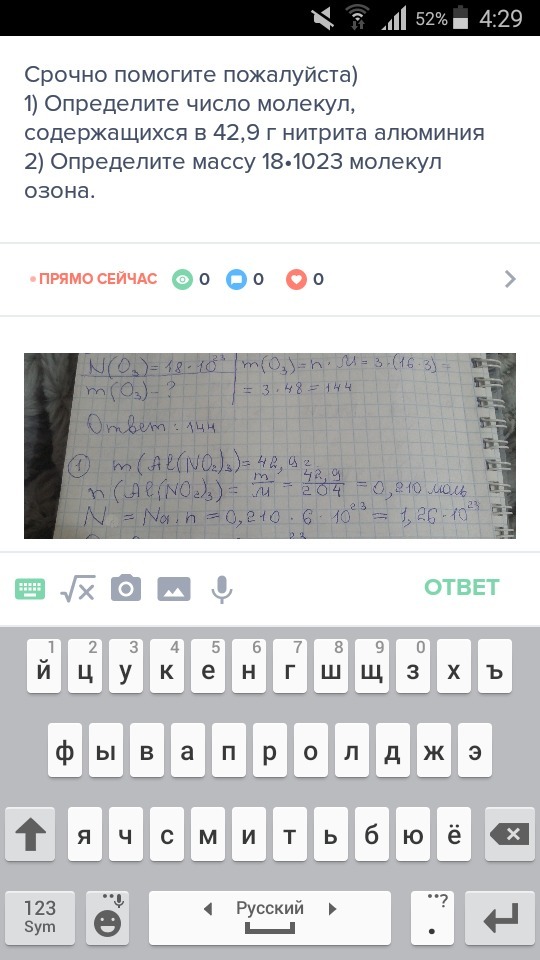 1) Определите число молекул, содержащихся в 42,9 г нитрита алюминия