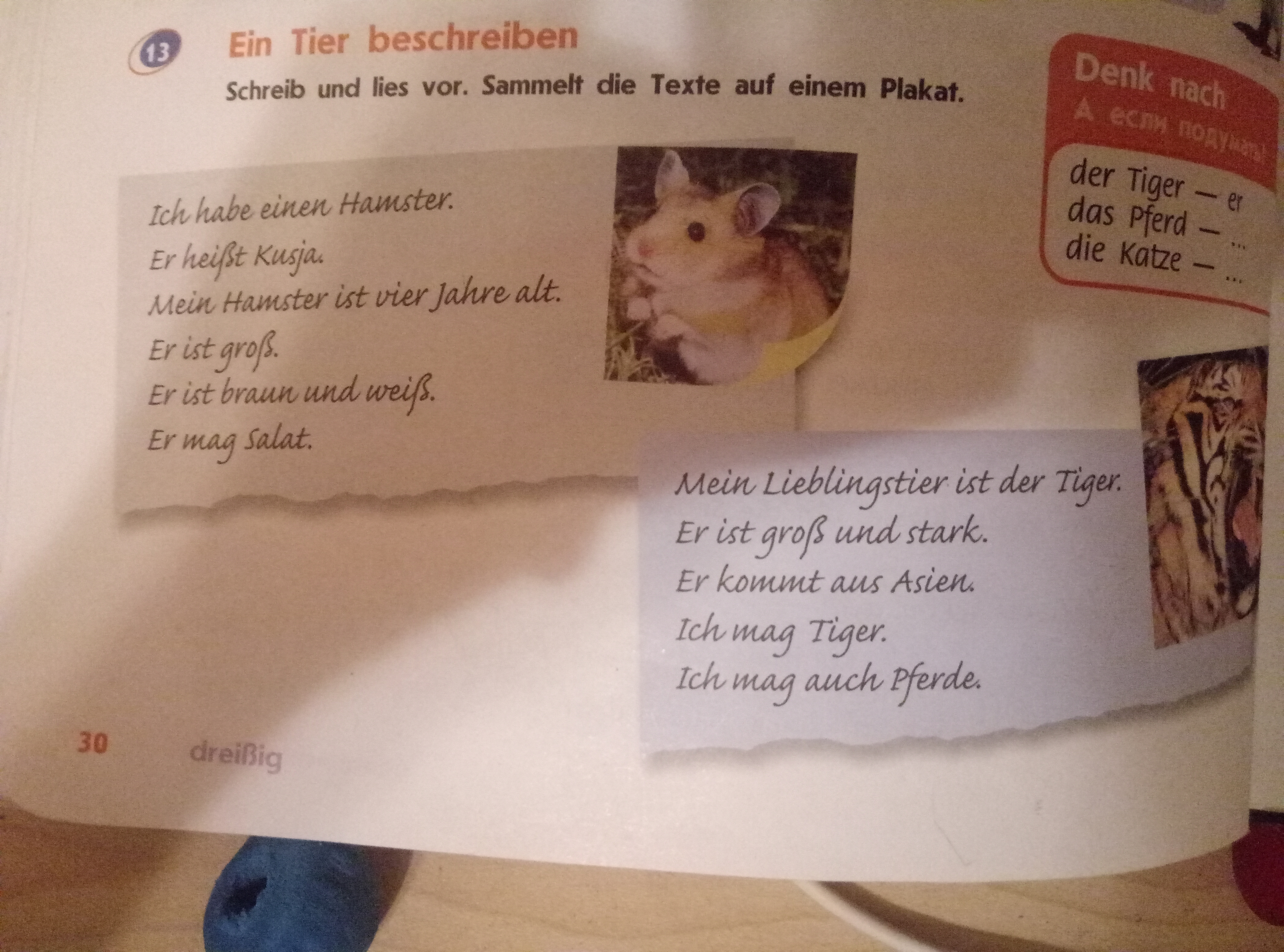 Напишите текст по немецкому про животного. С легкими,не замудренными словами. 5 предложений