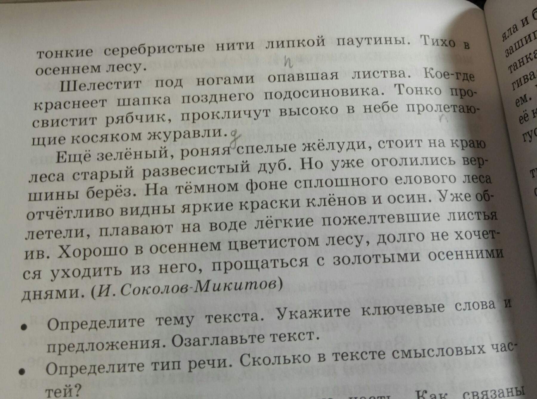 1. Опавшая, пролетающие, развесистый, пожелтевшие.