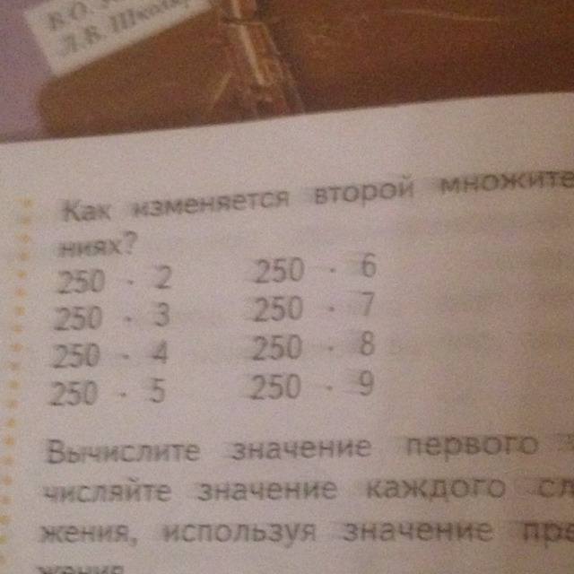 Как изменяется второй множитель в произведениях 250 X2 250 X3 250 х 4 250 х 5 х 250 6 250 х 7 250 x 8 250 Х 9 Вычислите значение первого выражения Вычислите значение каждого следующего выражения используя значение предыдущего выражения