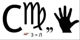 Первая буква с; после неё знак зодиака девы, нужно заменить третью букву на л, то есть вместо "в" будет "л"; рука означает "пять", убираем две первых буквы, остаётся "ть". Всё вместе будет слово "сделать".