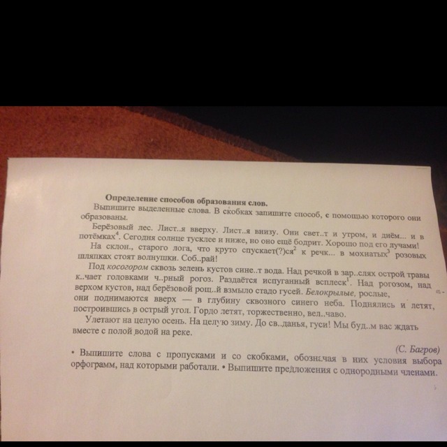 Листья, светят, спускается (что делает?), собирай, чёрный, рощей, величаво, до свиданья, будем.