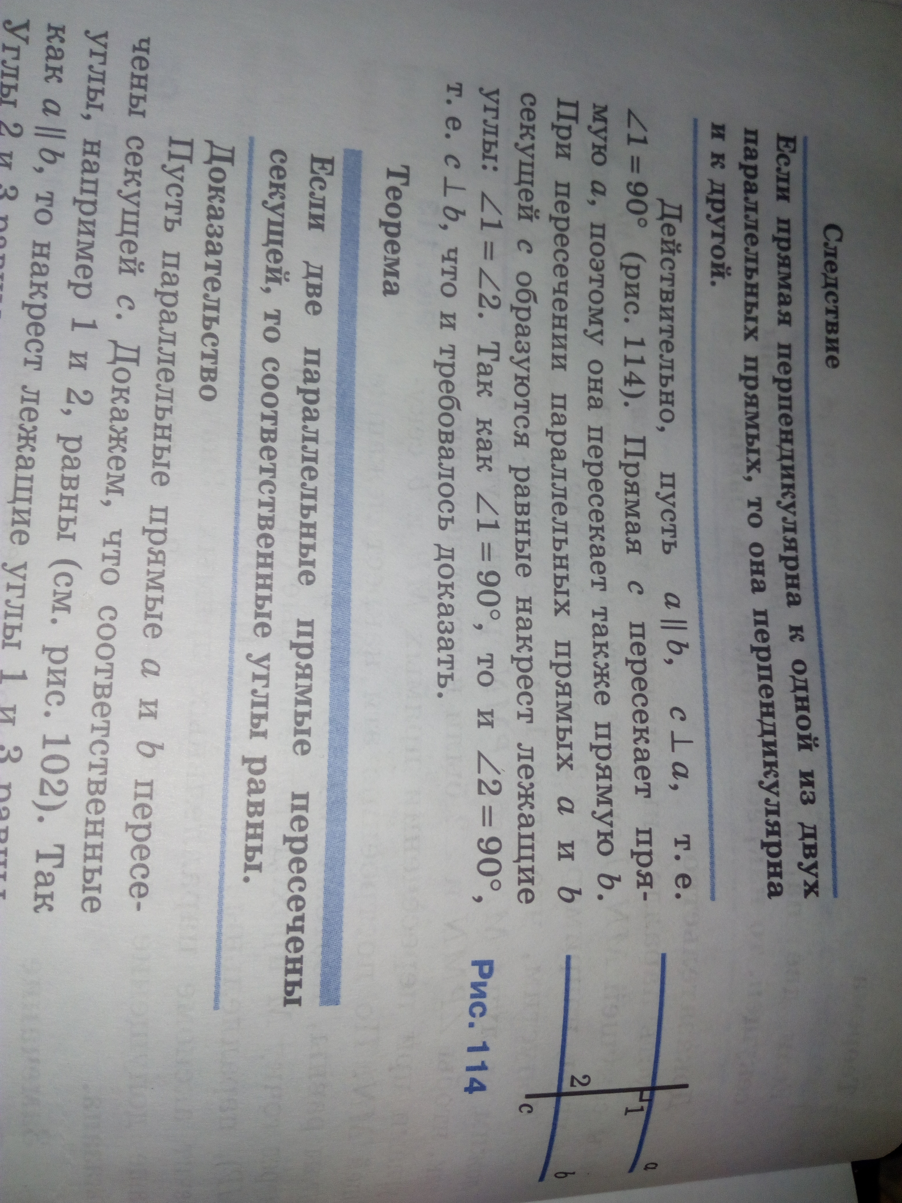 Если прямая перпендикулярна одной из двух параллельных прямых то, она перпендикулярна и другой.