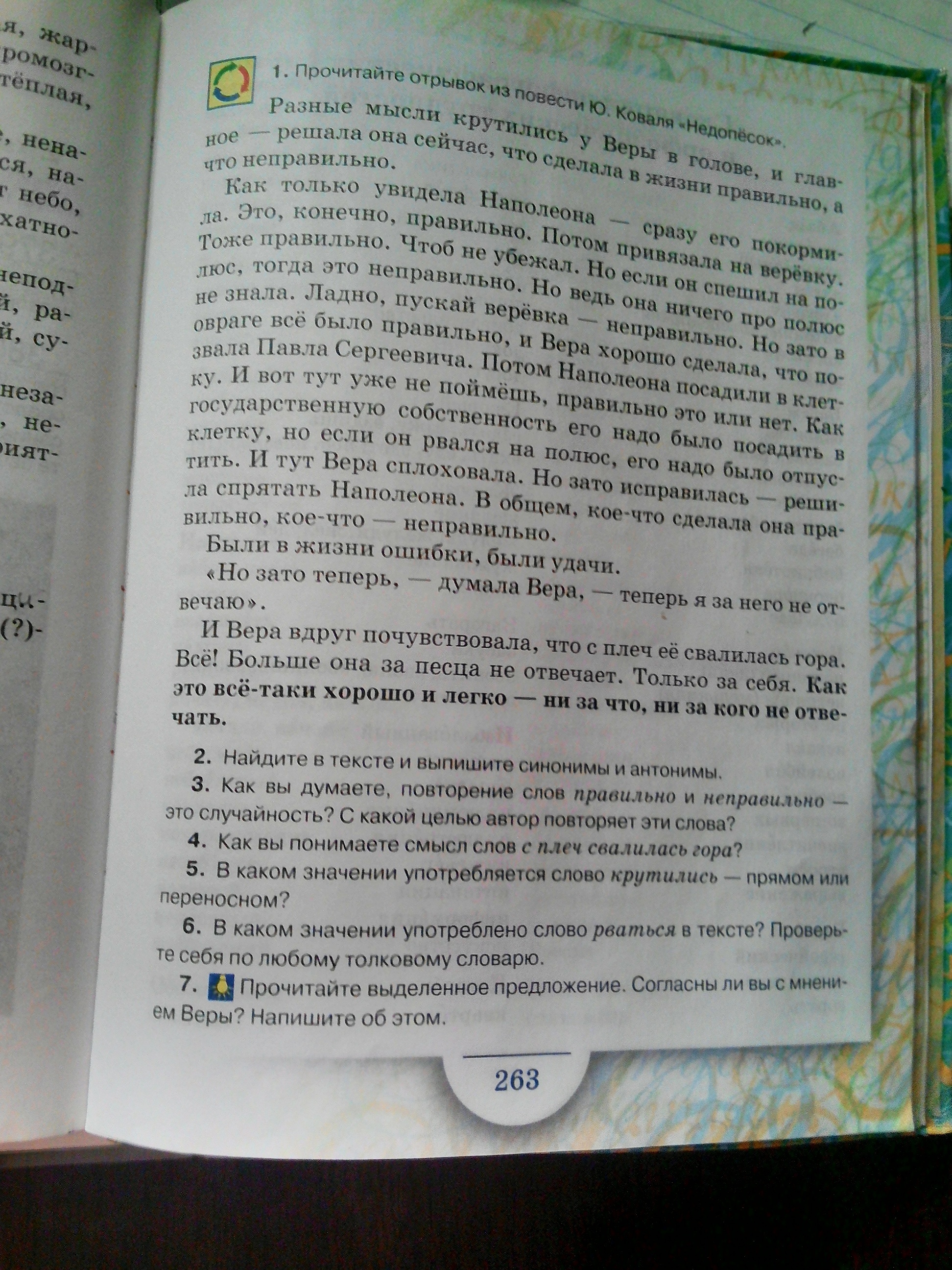 7.Да с мнением Веры я согласна ведь мы не можем отвечать за жизнь других когда еще и свою не прожили.