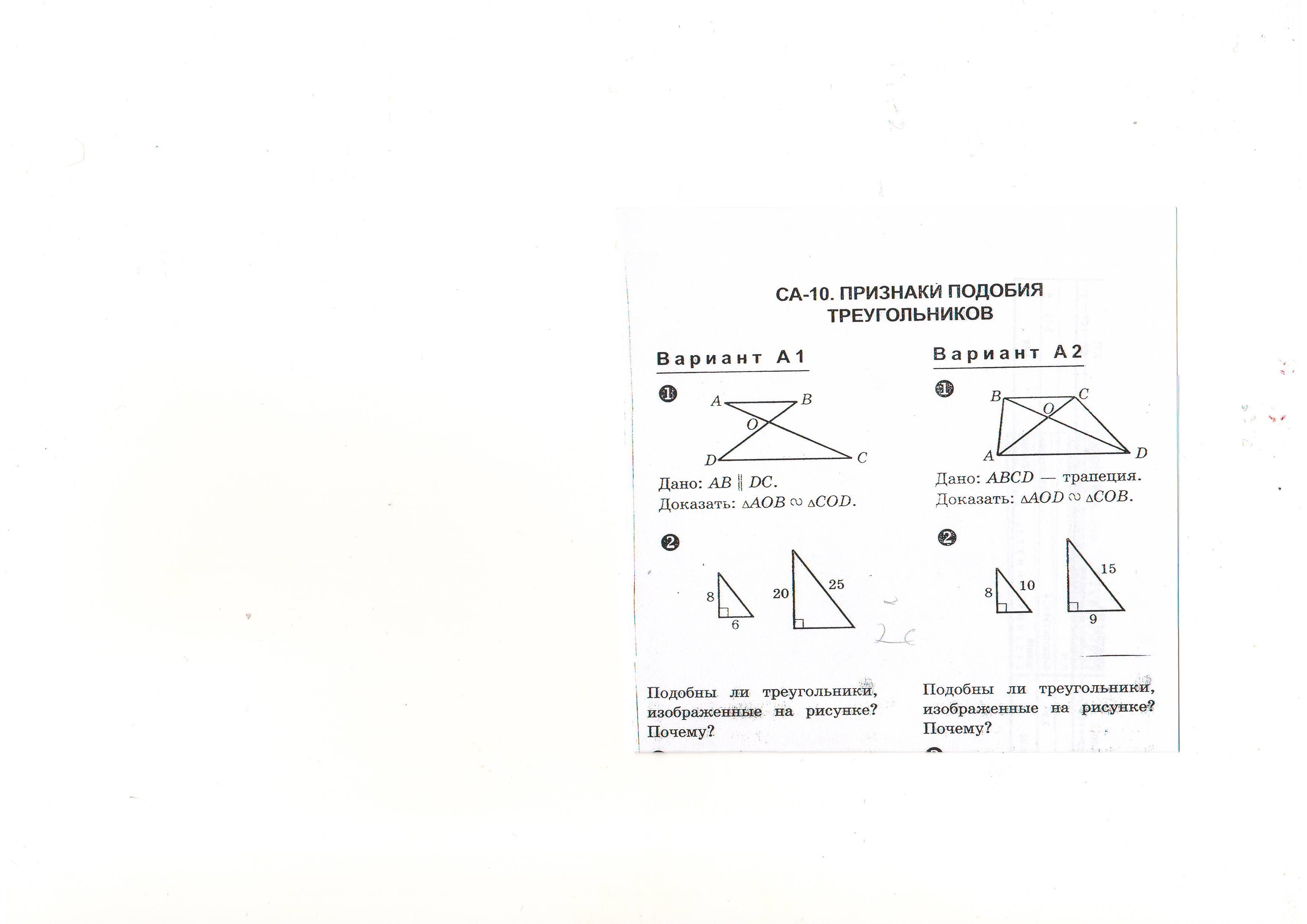 1.Признак подобных ∆:если 2 угла одного ∆ соответственно = 2 углам другого ∆,то ∆ подобны