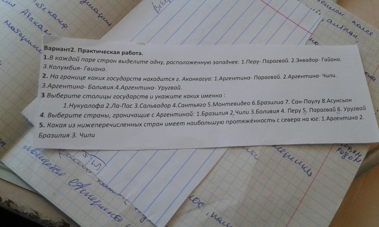 4) Чили Боливия Парагвай Бразилия Уругвай