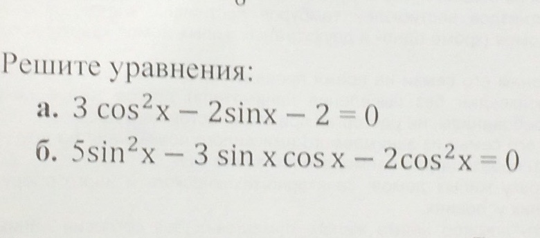 а. 3(1-(sinx)^2)-2sinx-2=0.