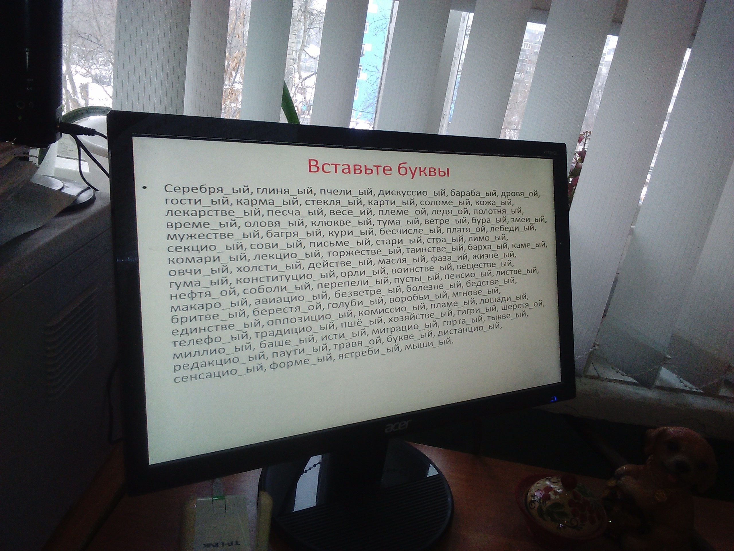 Серебряный, глиняный, пчелиный, дискуссионный, барабанный, дровяной, гостиный, карманный, стеклянный, картинный, соломенный, кожаный, лекарственный, песчаный, весенний, племенной, ледяной, полотняный, временный, оловянный, клюквенный, туманный, ветреный, буранный, змеиный, мужественный, багряный, куриный, бесчисленный, платяной, лебединый, секционный, совиный, письменный, старинный, странный, лимонный, комариный, лекционный, торжественный, таинственный, бархатный, каменный, овчинный, холстинный, действенный, масляный, фазаний, жизненный, гуманный, конституционный, орлиный, воинственный, вещественный, нефтяной, соболиный, перепелиный, пустынный, пенсионный, лиственный, макаронный, авиационный, безветренный, болезненный, бедственный, бритвенный, берестяной, голубиный, воробьиный, мгновенный, единственный, оппозиционный, комиссионный, пламенный, лошадиный, телефонный, традиционный, пшённый, хозяйственный, тигриный, берестяной, миллионный, башенный, истинный, миграционный, гортанный, тыквенный, редакционный, паутинный, травяной, буквенный, дистанционный, сенсационный, форменный, ястребиный, мышиный
