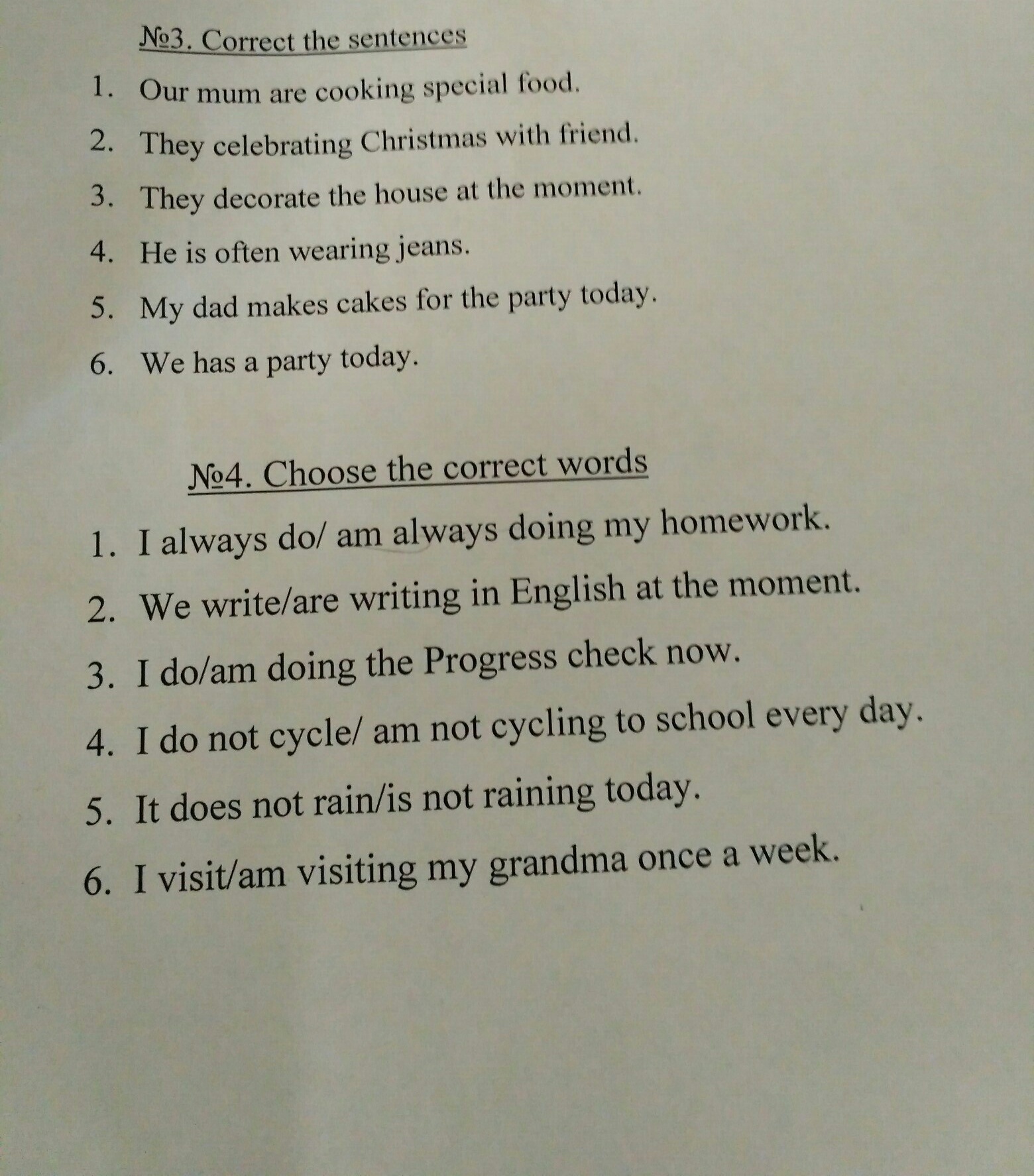 4)he is often wears jeans.