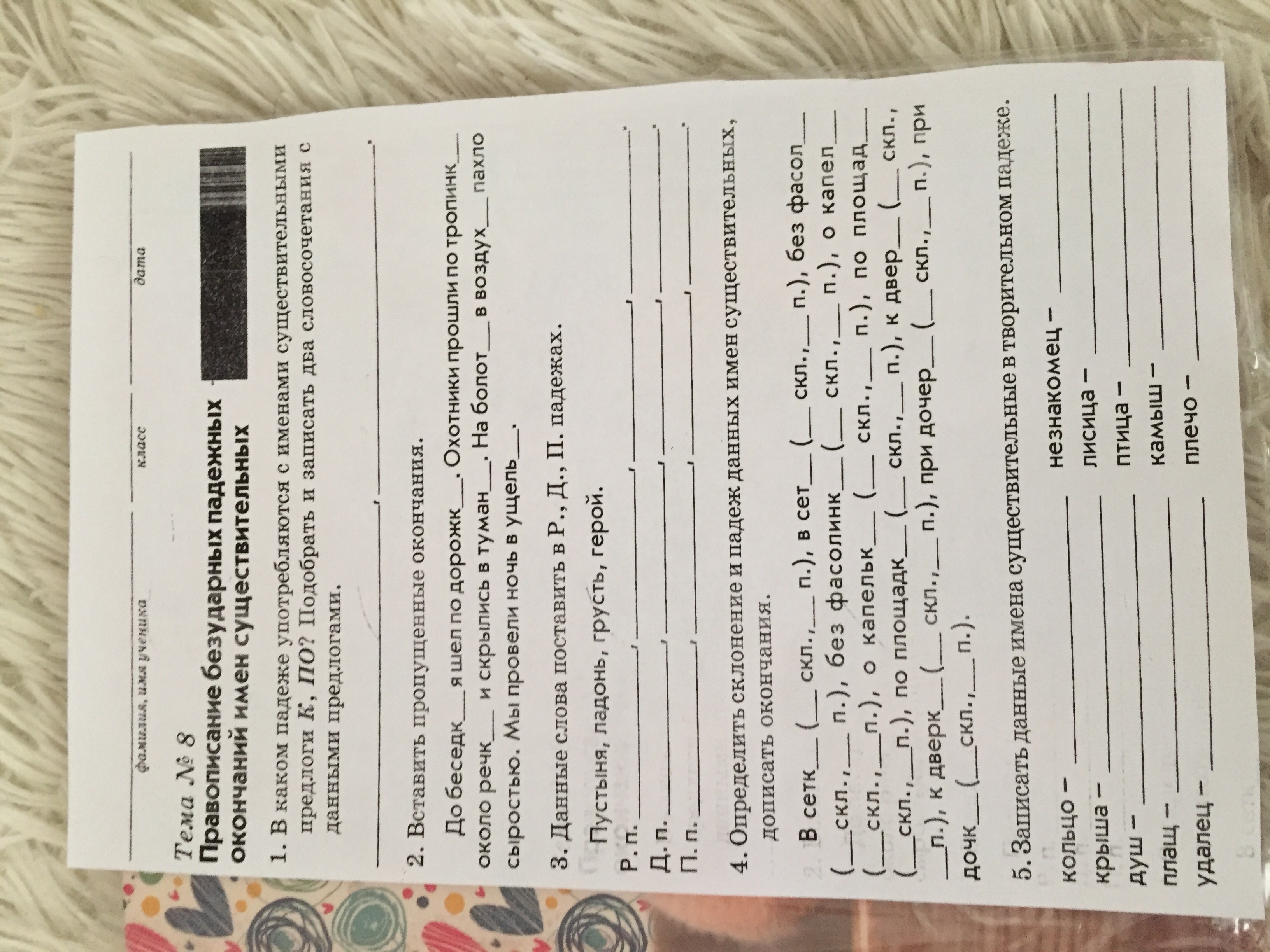 2) До беседки я шёл по дорожке. Охотники прошли по тропинке около речки и скрылись в тумане. На болоте в воздухе пахло сыростью. Мы провели ночь в ущелье