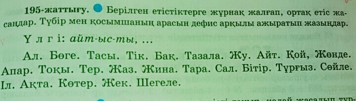 Алысты, богести, тасысты, тигисти, багысты, тазаласты, жуысты, койысты, жондести, апарысты, токысты, теристи, жазысты, жинасты, тарасты, салысты, битиристи, тургызысты, сойлести, илисти, актасты, котеристи, жегисти, шегелести