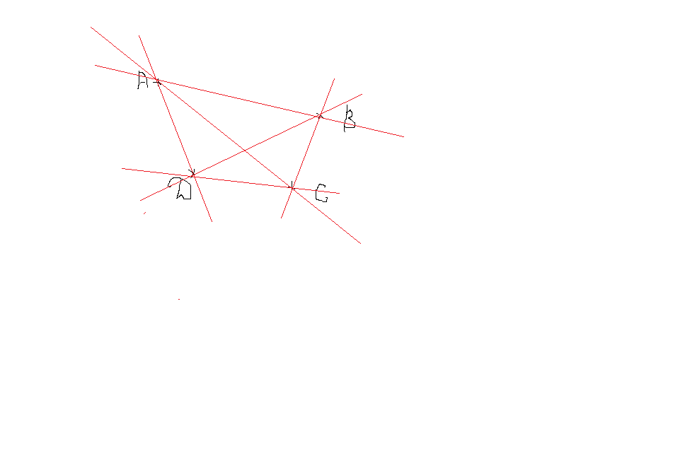 Нарисуй любой четырёхугольник, проведи в нём диагонали, получится то, что надо если продлишь все линии. Прямых должно получиться 6 штук